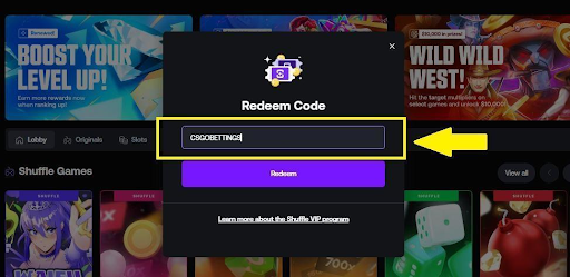 This bonus from the Shuffle redeem code āCSGOBETTINGSā comes with a 35x wagering requirement (bonus + deposit): Players should make a total bet of 35 times the total of their deposit and bonus before winnings can be withdrawn.